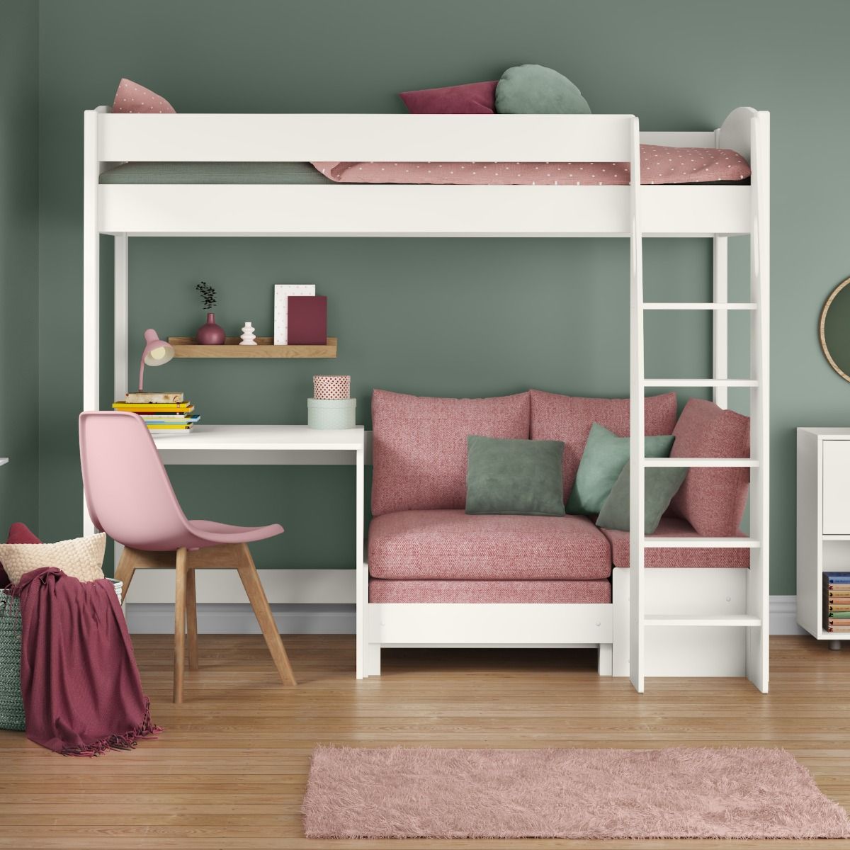 Hoppekids ECO Dream korkea parvisänky pöydällä