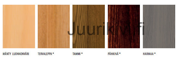 * Tilauksesta tehdas tekee erikoisvärejä toimitusajalla 2-4 kuukautta. Erikoisvärit löytyvät Puuväri -kuvasta. Erikoisväreillä lisähinta, kysy lisää asiakaspalvelustamme.