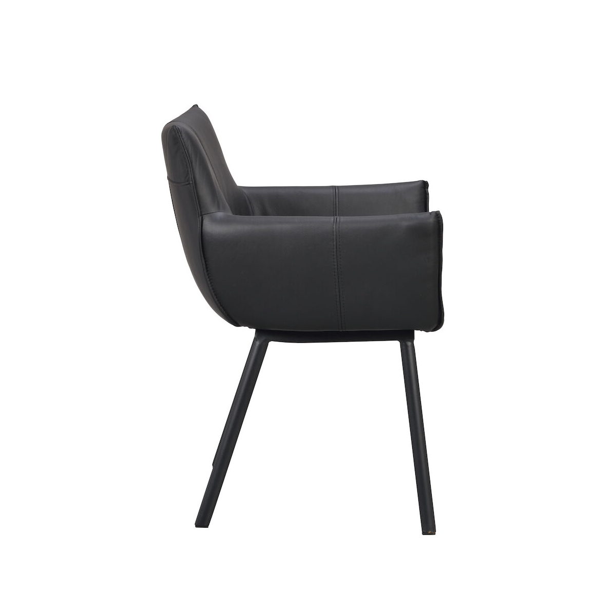 Upea nahkainen Rowico Hinckley ruokatuoli! Hinckley tuolissa on pehmustettu mustalla nahalla verhoiltu istuinosa, jota koristavat tereet. Hinckley tuoli on oiva valinta niin ruokapöydän ympärille, työtuoliksi kuin viihtymiseen.
