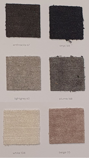 Värit: anthracite 67, onyx 169, light grey 60, plumb 168, white 104, beige 05.